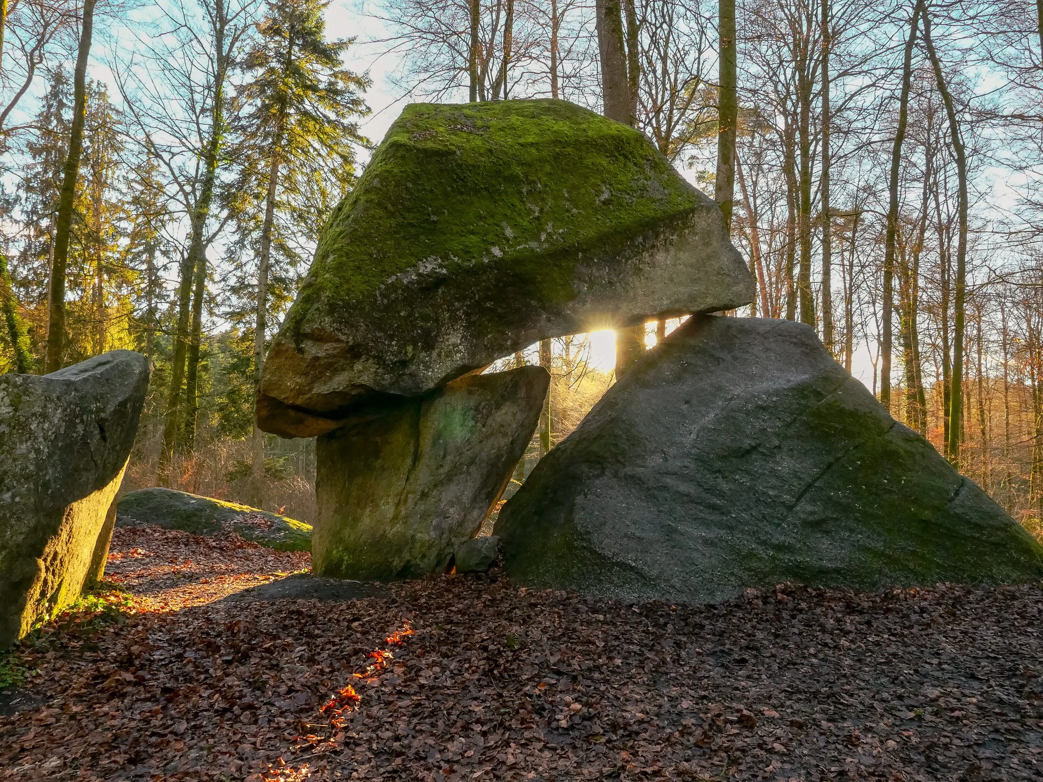 Wer nun dafür verantwortlich ist, dass einer der drei Erdmannlisteine quer über den anderen liegt, ist Nahrung für Spekulationen. Für die einen ist es zweifellos eine Kultstätte, von Menschenhand errichtet. Diese These basiert auf der Anwesenheit weiterer Erratiker/Menhire in der Gegend. Setzt man diese und ein paar wichtige Jahresdaten wie beispielsweise Mittwinter, Mittsommer und den 1. August (sic!) in Relation, kommen einige Linien beim Erdmannlistein zusammen. Wie genau die Menschen dann vor zigtausend Jahren den sechzig Tonnen schweren Granitbrocken auf die beiden anderen gelupft haben sollen, ja, das ist eine gute Frage, aber Wunder geschehen, wer hat’s gesehn …? Man denke an Stonehenge … Nicht-einheimische Wissenschaftler halten das mit der menschengemachten Kultstätte für Guggus und erklären die Formation des Erdmannlisteins mit dem Prinzip Zufall. Wobei man im Department Bau, Verkehr und Umwelt des Kantons AG, das alle Findlinge im Kanton kartiert und beschrieben hat, ein offenes Ohr für die Kultstättentheorie hat. Wie auch immer, heute ist der Erdmannlistein als Teil des Freiämter Sagenwegs Pilgerstätte für Freizeittouristen, die die Sitzbänke und die Grillstellen an den Steinen gerne nutzen. Auch Leute, die auf Pfaden ihrer eigenen Wissenschaft wandeln, treffen sich dort mit Pendeln, Ruten und Tensoren, um Drachenlinien und anderes zu vermessen. Das Gebiet ist also Quelle vielfältiger Inspirationen …